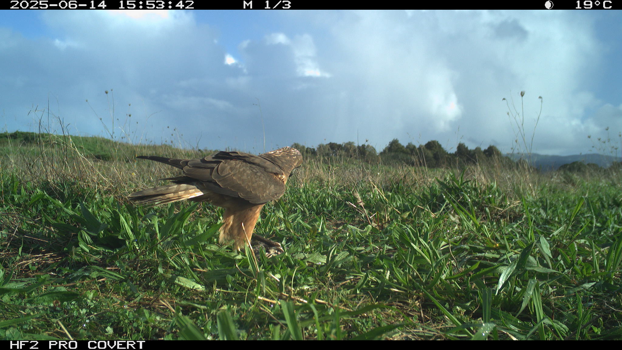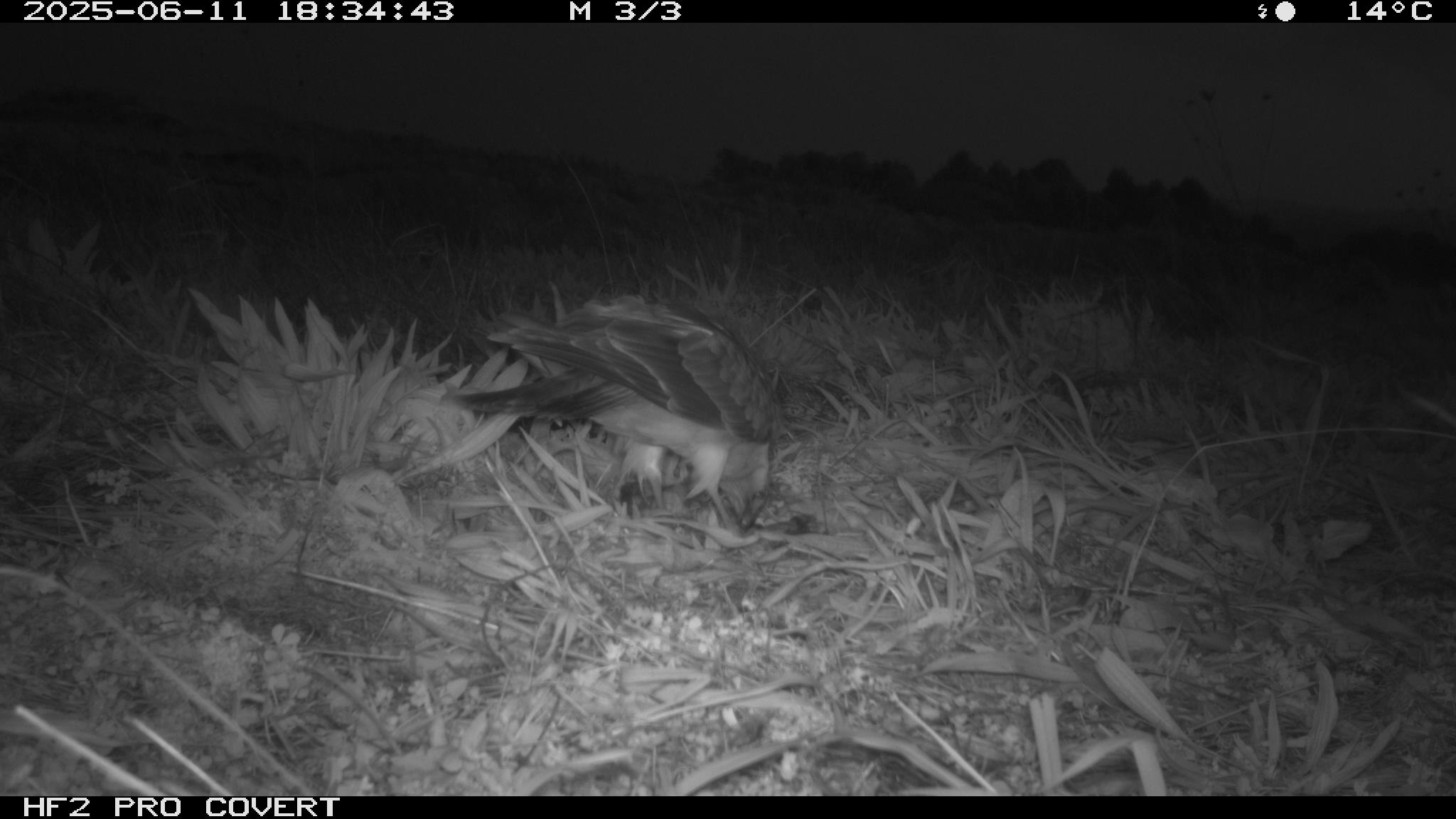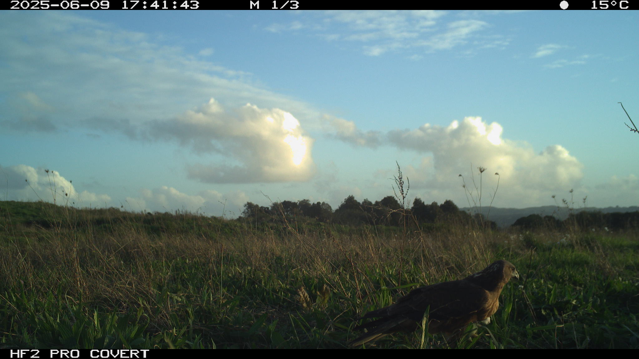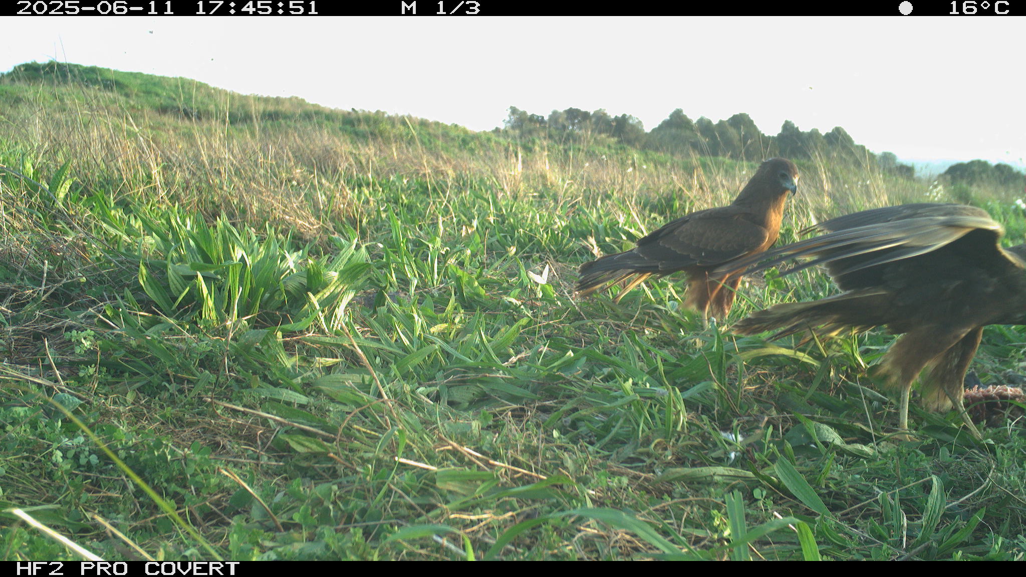 During preliminary testing, I had set up cameras at the test site (which is in Waiuku) around the bait (rabbit carcasses to draw Kahu into the area to establish a regular feeding site). They picked up some pretty awesome images – notably two Kahu that can be told apart (one has a white patch on the back of the neck, and the other has a white patch on the back of the head).
