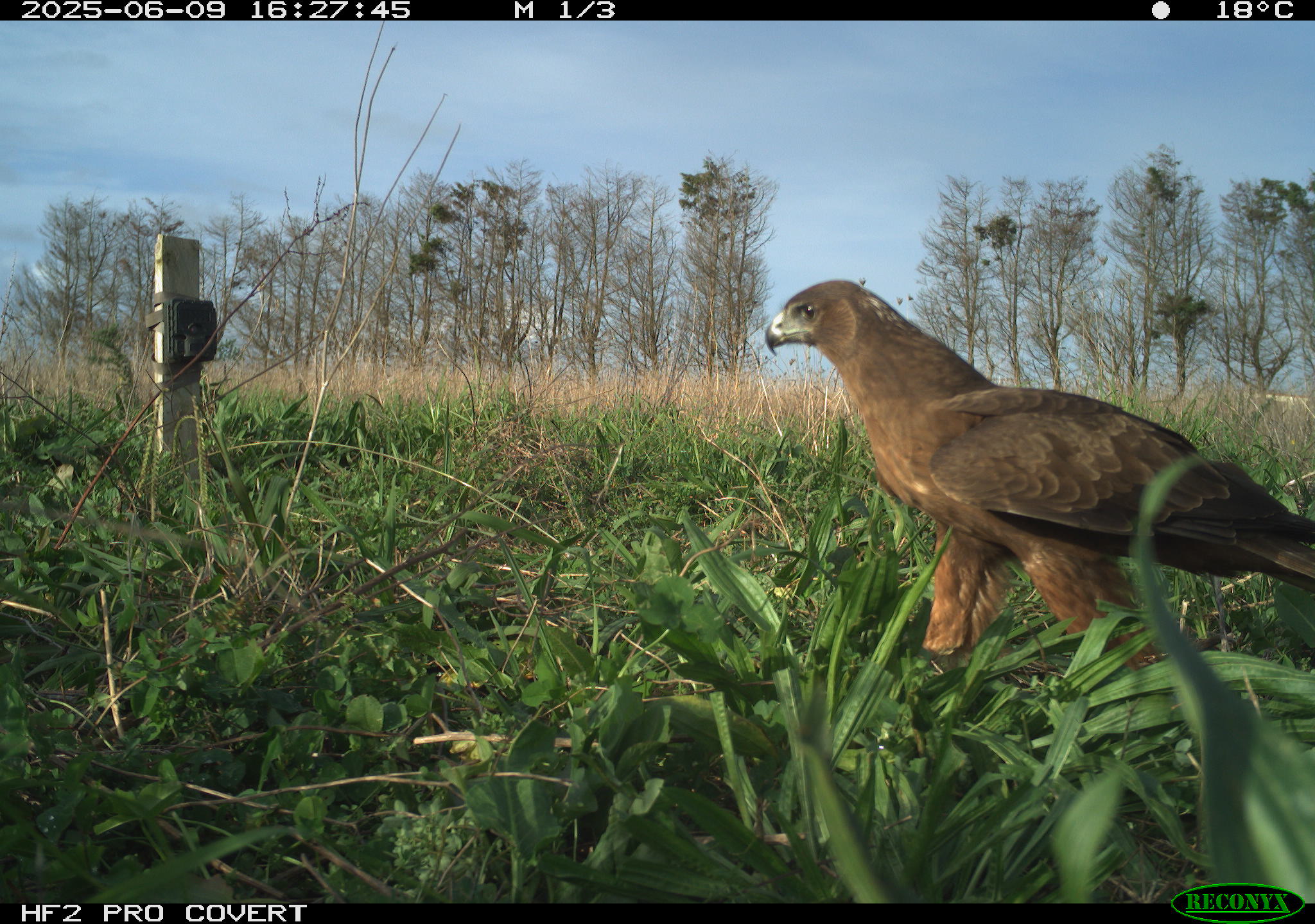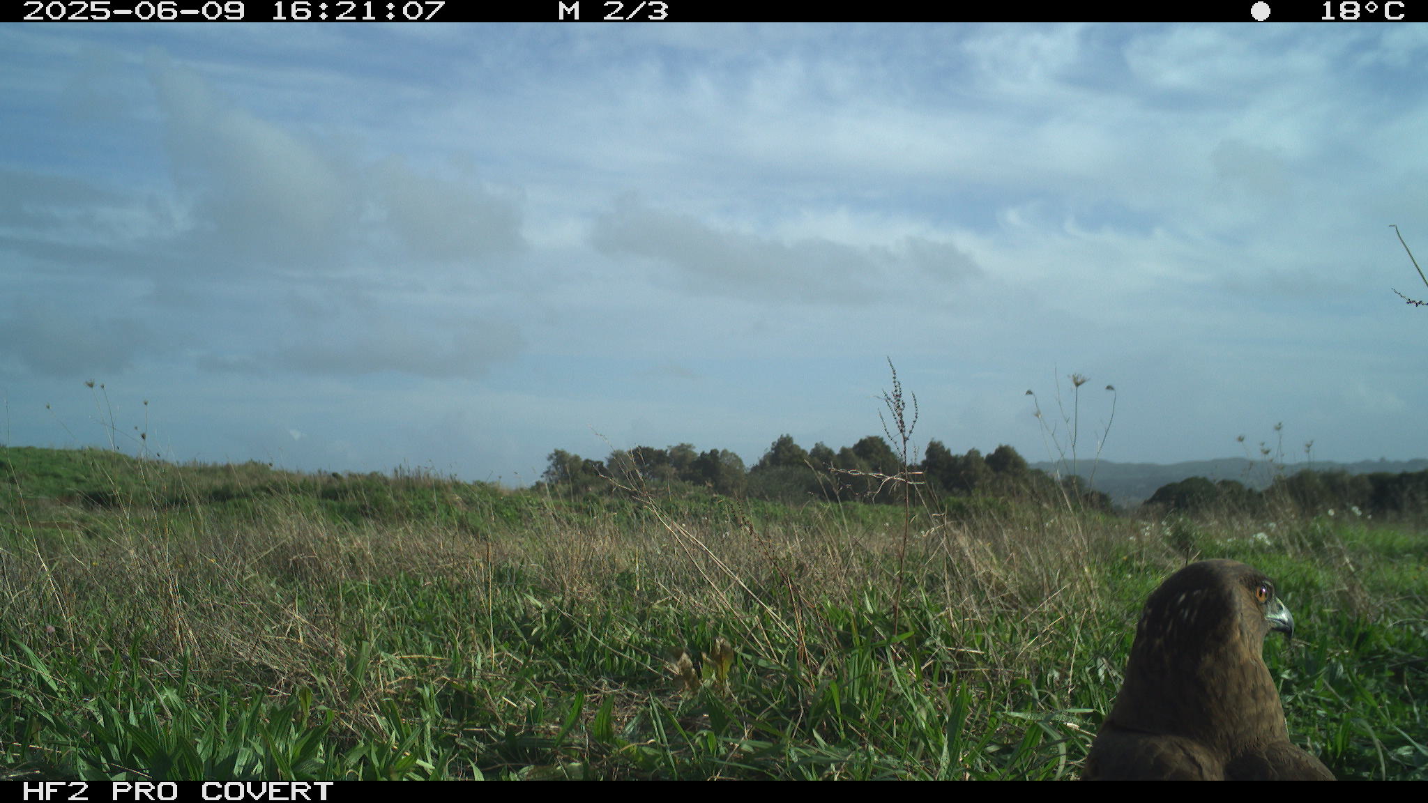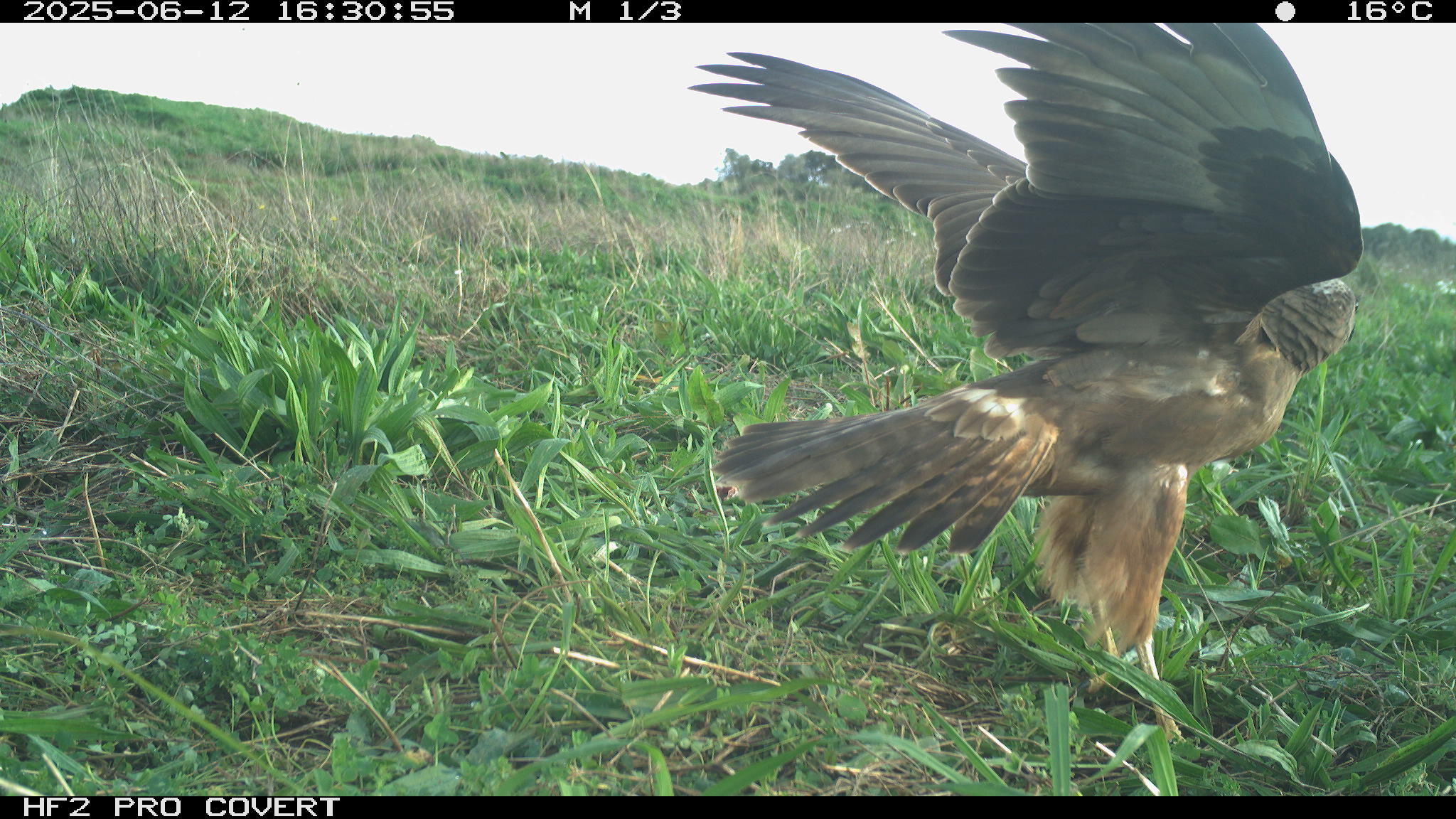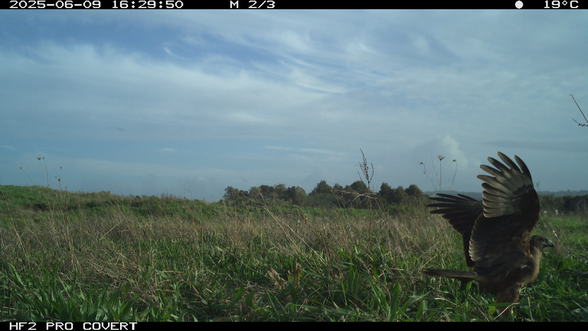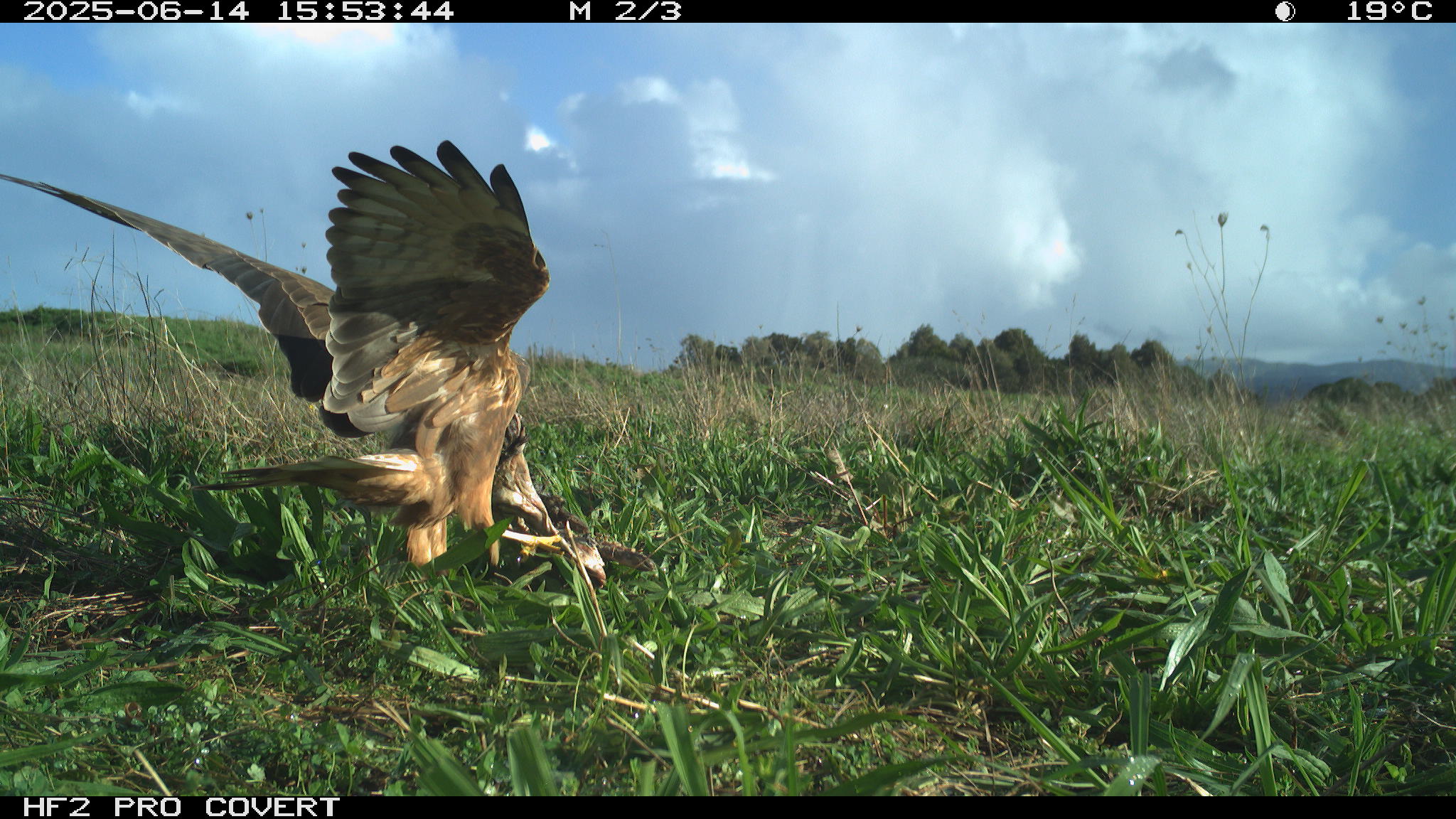 During preliminary testing, I had set up cameras at the test site (which is in Waiuku) around the bait (rabbit carcasses to draw Kahu into the area to establish a regular feeding site). They picked up some pretty awesome images – notably two Kahu that can be told apart (one has a white patch on the back of the neck, and the other has a white patch on the back of the head).