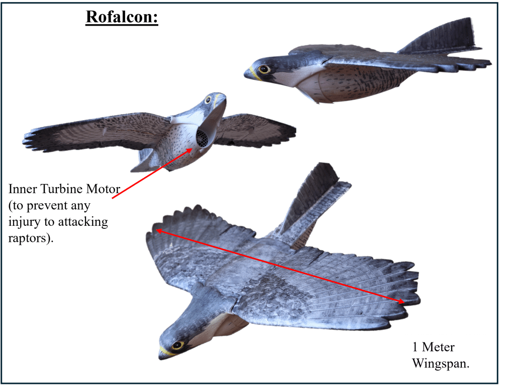 Recent work using Rofalcons and other branded bird drones like the RobotFalcon in the Netherlands has been looking into using this technology as a deterrent – with the intention of deterring flocking birds from airport runways. In 2021 a project based in Workum (Netherlands) tested the effectiveness of the RobotFalcon in deterring bird flocks from agricultural fields (1). The study found that the RobotFalcon caused immediate and prolonged flight responses in corvids and gulls (crows and gulls immediately flew away and did not come back or land for some time), outperforming conventional deterrents like drones and kites. Birds remained away significantly longer after RobotFalcon exposure, and habituation was minimal over repeated trials. The authors concluded that realistic predator mimicry using robotic flight is a promising, non-lethal method for reducing bird-related conflicts in open landscapes.